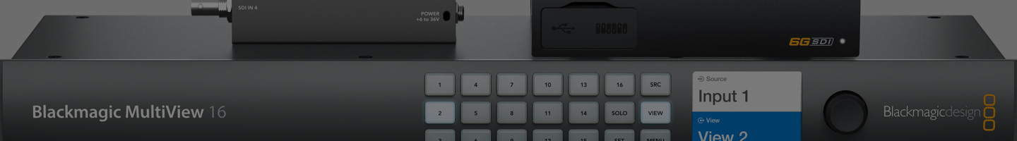 With three great models to choose from, Blackmagic MultiViews can be used for any job and in any location! MultiView 4 models are small enough to be installed anywhere, even behind monitors or at the back of equipment racks using the optional rack shelf! When you have more than four sources, you can connect multiple MultiView 4s together, or use MultiView 16 for larger installations, and you can control them with a hardware control panel or remotely over Ethernet!