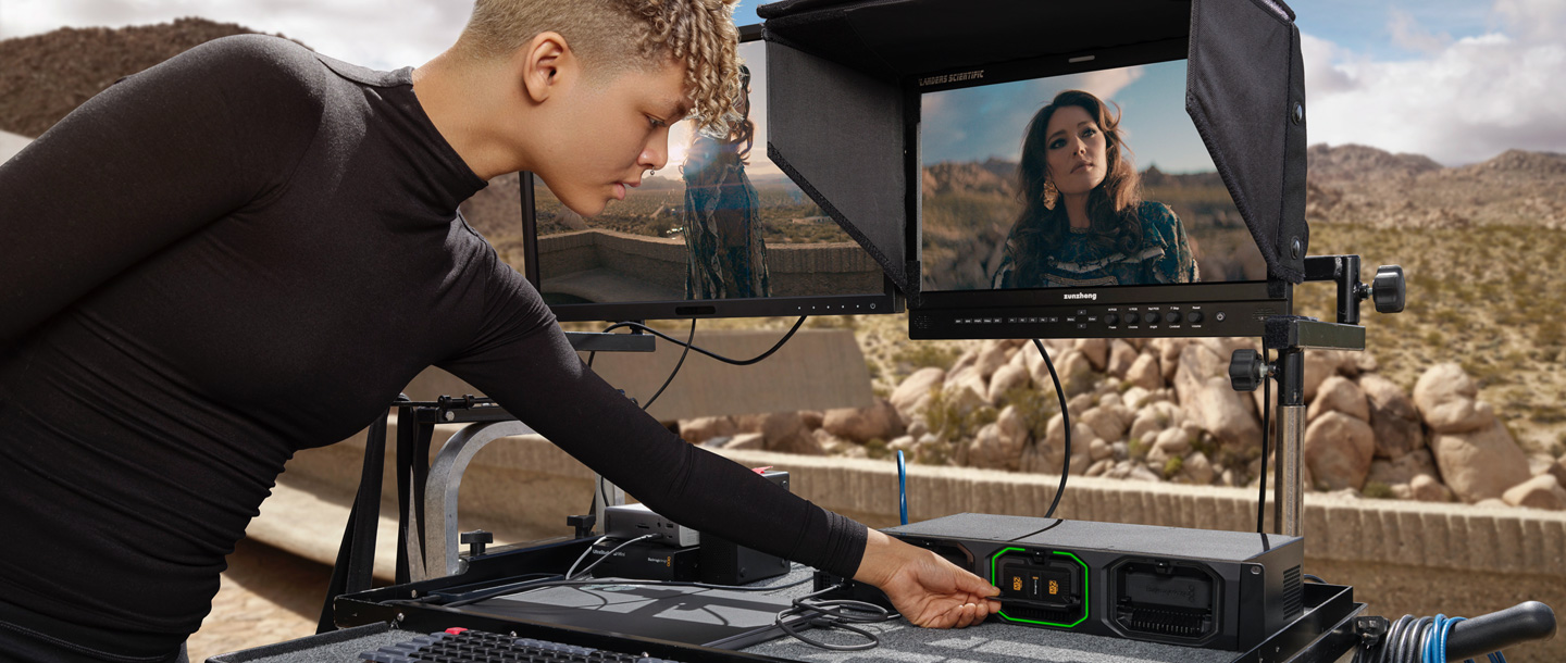 Mit mehreren Optionen für die Bildkontrolle lässt die URSA Cine Crews am Set schneller arbeiten. Der ausklappbare Monitor ist auf einer Seite mit einem 5-Zoll-HDR-Touchscreen und auf der anderen mit einem externen, farbigen Status-LCD ausgestattet. Sie können den Bildschirm sogar drehen und wieder in die Kamera einklappen. Rechtsseitig hat die Kamera eine speziell der Assistenz gewidmete „Station“ in Form eines zweiten 5-Zoll-HDR-Touchscreens. Dieser ermöglicht es der Crew, ohne externe Monitore an der Kamera zu arbeiten. Außerdem ist das 1500 Nits helle Display mit entfernbarer Gegenlichtblende immer gut lesbar, auch in hellem Sonnenlicht. Onscreen-Overlays zeigen Ihnen Status und Aufzeichnungsparameter, Histogramme, Bildrandmarkierungen und mehr an. Vorhanden ist sogar ein spezieller Schärfezieher-Modus, der Ihnen hilft, die perfekte Fokussierung hinzukriegen.
