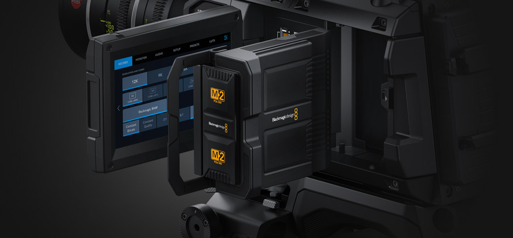 Blackmagic RAW ist ein revolutionäres Format, das auf die Erfassung und den Qualitätserhalt der Daten von Ihrem Kamerasensor ausgelegt ist. Blackmagic RAW speichert Kamerametadaten, Objektivdaten, Weißabgleich, Informationen der digitalen Farbtafel und benutzerdefinierte LUTs. Das gewährleistet einen einheitlichen Look von Bildern am Set und in der Postproduktion. Optionen für konstante Qualität fixieren das Qualitätsniveau bei entsprechender Anpassung der Kompression an die vorhandene Zeichnung der jeweiligen Szene. Mit den Kodierungsoptionen mit konstanter Bitrate hingegen erhalten Sie die bestmöglichen Bilder mit vorhersehbaren, konstanten Dateigrößen. URSA Cine Kameras zeichnen auf das mitgelieferte Blackmagic Media Module 8TB auf. So können Sie über vier Stunden Blackmagic RAW in 12K aufnehmen oder massige 20 Stunden in 4K.