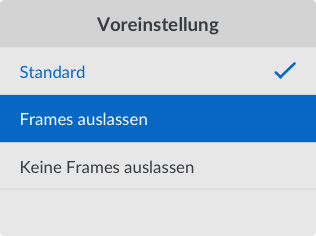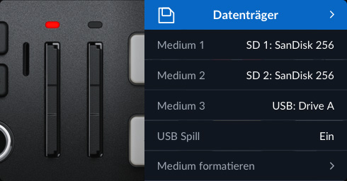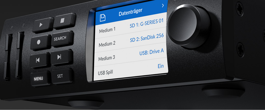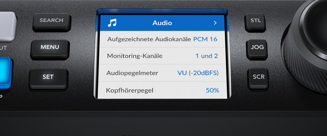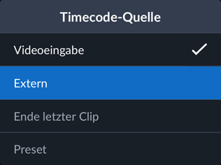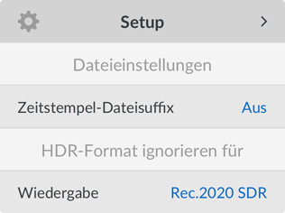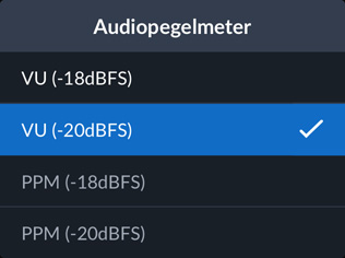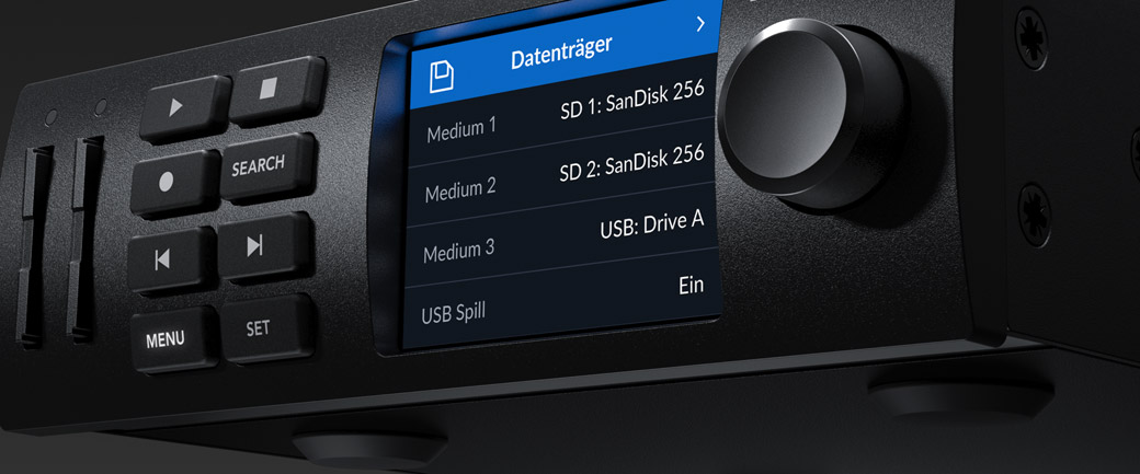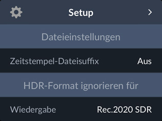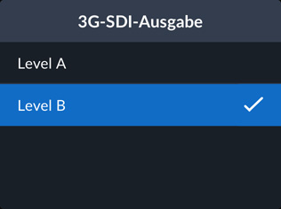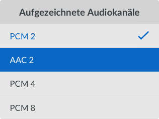 Hier bestimmen Sie, ob Sie HDMI- oder SDI-Quellen aufzeichnen. Zudem können Sie mit der Input-Taste an der Frontblende auch ohne das Menü zwischen HDMI- und SDI-Quellen wechseln. Das Video auf dem ausgewählten Eingang sieht man zudem über die Monitoring-Ausgabe.