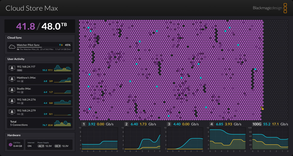 O Blackmagic Cloud Store Max foi criado para replays graças à sua rapidez e alta capacidade. Por isso, ele suporta vários canais de gravação. Caso precise de mais velocidade, é possível adicionar um segundo Cloud Store.