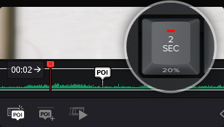 É normal retroceder antes do POI para mostrar ao espectador o que aconteceu antes de um evento. O indicador de distância do POI demonstrará a distância percorrida em segundos desde o POI.