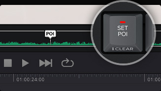 Para marcar um evento, basta pressionar a tecla “Set POI” ou a barra de espaço quando a visualização de entrada estiver selecionada. Isso define a duração do POI a partir do timecode da entrada de vídeo e posiciona o POI na visualização da fonte.