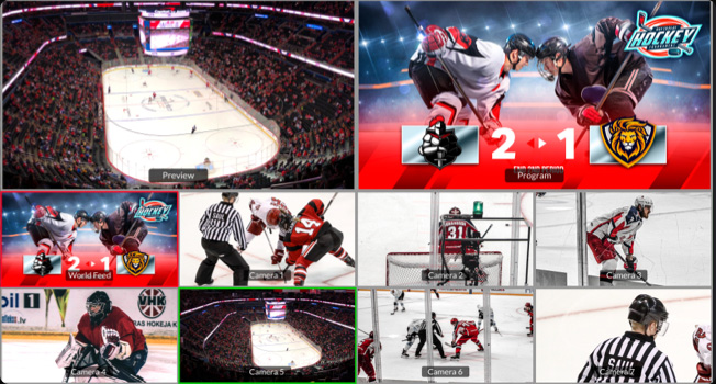 O botão “Iniciar” executa o replay. Ele é reproduzido a partir da posição atual. Ele também pode acionar um stinger automático. O visualizador muda para uma multivisualização, permitindo escolher o próximo ângulo.