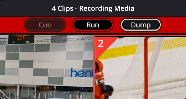 É possível acessar os controles de replay usando a paleta de replay acima do visualizador e também os botões no DaVinci Resolve Replay Panel. O botão “Cue” é bom para reproduzir linhas de tempo de edição, pois sinaliza o início. O botão “Run” inicia o replay e altera a saída de vídeo para a câmera selecionada, à medida que o visualizador se alterna para uma multivisualização, onde você pode selecionar o próximo plano. Além disso, abre a saída da chave de hardware para permitir a reprodução no switcher. Ele também executará o stinger automático, se habilitado. O botão “Dump” interrompe a reprodução, reverte a saída do hardware para a multivisualização e executa o stinger automático, se habilitado. Além disso, adiciona o replay à linha de tempo se “Adicionar à Linha de Tempo” estiver ativado.