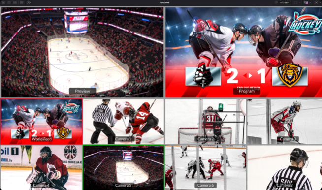 A tecla “Input View” altera o visualizador para uma entrada direta do hardware de vídeo, como um switcher multivisualização. Fornece uma visualização de baixa latência das câmeras, ideal para marcar o POI para replay.