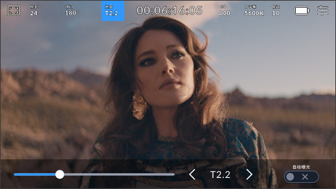 HUD显示包含帧率、光圈、时间码、快门角度、白平衡、ISO、音频电平等众多关键信息。以指尖上下滑动即可显示或隐藏HUD显示。例如,您可以轻触“WB”提示图标来调整白平衡设置,或点按音频表来更改音频电平。它采用的是全面交互式设计,因此当您点按任意选项时就能立即更改设置,无需逐层搜索复杂的菜单!