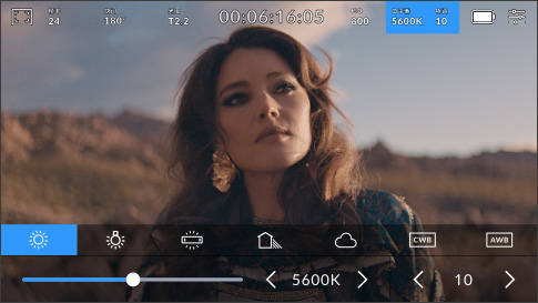 URSA Cine可迅速更改白平衡设置!只需点按白平衡提示图标即可调出明亮日光、白炽灯泡、荧光灯等常用的色温预设列表。您可以手动输入数值,并且只要轻轻点按开启或关闭该功能就可以将自定义白平衡设置与上一次预设进行对比。您甚至可以通过白卡来自动调整白平衡,从而恰到好处地补偿任意光照条件。