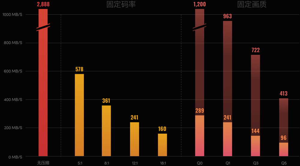 实际速率视采集影像而定。带有极高或极低频率细节的固定画质影像,其速率可能在上图所示的平均值范围之外。