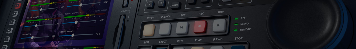 HyperDeck Extreme includes professional audio for modern broadcasters or archiving from older broadcast decks. When working in SDI formats, you can record 2, 4, 8 or 16 channels of audio in real time. For capturing legacy programming there are 4 XLR analog audio inputs that let you record all 4 channels from Betacam SP decks. You can monitor using 4 on screen audio meters with user selectable VU or PPM ballistics. For consumer devices such as VHS, DVD and set top boxes, there are also direct HiFi audio inputs. HyperDeck Extreme models use the latest broadcast technology, however the analog connections have also been designed to low noise and low distortion broadcast specifications.