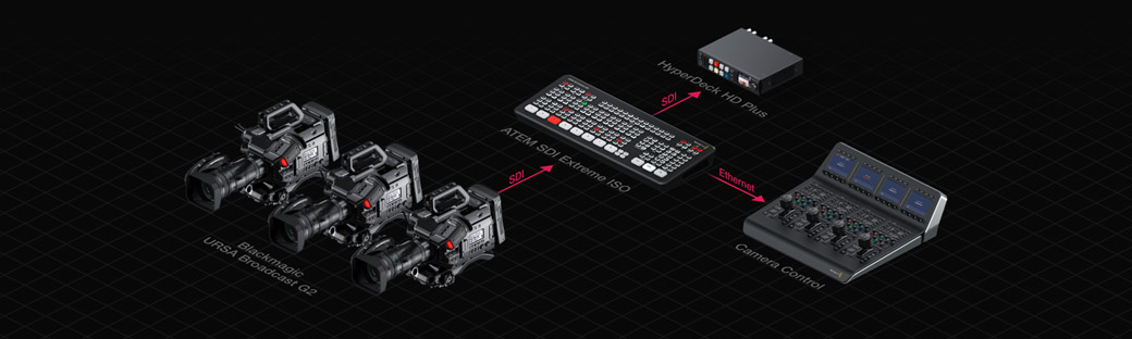 Los modelos ATEM SDI brindan la posibilidad de producir programas televisivos improvisados con calidad profesional, tales como competencias de cocina en vivo. Es posible combinar unidades portátiles con soportes para el hombro y visores electrónicos, junto con cámaras para trípodes con dispositivos URSA Studio Viewfinder. Todas las unidades pueden conectarse a un mezclador ATEM para realizar producciones en vivo. Esto permite que una persona alterne las imágenes desde un dispositivo ATEM SDI, por ejemplo, mientras otra emplea una unidad ATEM Camera Control Panel conectada a un equipo informático a fin de ajustar el color simultáneamente. A su vez, es posible grabar la salida principal con el propósito de crear copias maestras del programa en tiempo real.