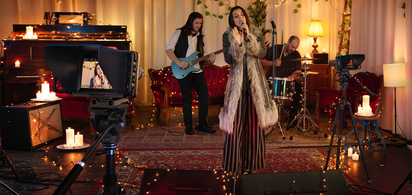 Ahora es muy fácil para las bandas crear sus propios videoclips y transmitir sus conciertos por Internet. Basta con conectar varias cámaras para captar una toma general del grupo y primeros planos de cada artista. Gracias a las herramientas de audio Fairlight, que incluyen un ecualizador paramétrico de seis bandas con compresor y limitador, la calidad del sonido es insuperable. Los modelos ATEM SDI ofrecen diversos efectos y compositores para crear estéticas alocadas al combinar fuentes animadas, tales como el visualizador de iTunes. Además, las unidades Blackmagic Studio Camera incluyen herramientas de corrección cromática, las cuales permiten lograr estilos visuales cinematográficos y sorprendentes. Todo esto simplifica la grabación de videoclips y fomenta la difusión de tu banda transmitiendo los conciertos en directo a través de YouTube Live o Facebook.