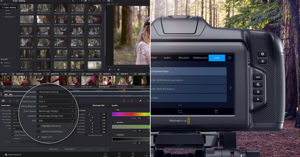 DaVinci Resolve apporte une prise en charge du Blackmagic RAW, pour vous permettre de filmer et de travailler immédiatement sur vos fichiers ! DaVinci Resolve a été utilisé sur plus de longs‑métrages haut de gamme, publicités télévisées, clips musicaux et séries télévisées que n'importe quel autre logiciel. Téléchargez DaVinci Resolve dès maintenant pour monter, étalonner, effectuer les effets visuels et la post-production audio dans les meilleures conditions ! La mise à jour DaVinci Resolve apporte une prise en charge complète du Blackmagic RAW pour un workflow non destructif. Les ajustements de l’image et les paramètres que vous effectuez au sein de la caméra seront reportés et modifiables dans DaVinci Resolve via les métadonnées. Il est également possible de modifier les paramètres RAW dans DaVinci Resolve, d’ouvrir les fichiers dans d’autres applications prenant en charge le Blackmagic RAW et de les visualiser automatiquement. Ainsi, les images sont consistantes, quel que soit le logiciel ou la plateforme que vous utilisez.