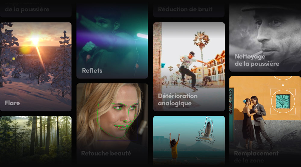 DaVinci Resolve Studio inclut plus de 40 effets Resolve FX accélérés par GPU et CPU supplémentaires, dont les effets de flare et de reflet, de détérioration analogique, de netteté, et bien plus  ! Vous disposez également d’outils de retouche visage et beauté, ainsi que de restauration des images pour supprimer les rayures, la poussière et le flicker. Le Film Look Creator vous permet d’ajouter des rendus cinématographiques qui émulent la pellicule, ainsi que les effets Halation, Grain, Gate weave, Split toning et plus  ! L’outil de remplacement de la zone permet de cloner et de peindre par-dessus une partie de l’image, tandis que le plug-in de suppression des objets est utilisé pour supprimer des objets entiers d’une scène. Les plug-ins utilisés pour les longs-métrages peuvent être extrêmement onéreux, DaVinci Resolve Studio est donc un investissement très rentable  !