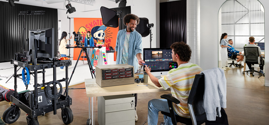 Share up to 4 independent SSDs or U.2 disks on your network. Includes 4 x 10G Ethernet ports and HDMI for status monitoring. Blackmagic Cloud sync allows the distribution of files globally.
