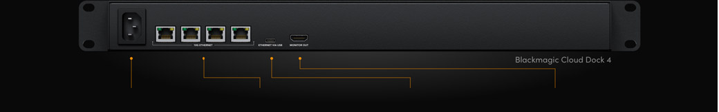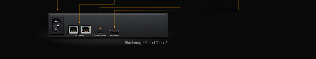 Blackmagic Cloud Dock lets you mount media disks from cameras and directly share your media files globally with editors and colorists over a fast 10G Ethernet network without waiting for files to copy! The Blackmagic Cloud Dock syncs and shares media from any SSD disk with Blackmagic Cloud. It even understands proxy workflows, so a whole timeline and its media can be shared in minutes. It features high speed 10G Ethernet connections for extremely fast file access, even with multiple users connected. File access is very low latency, so responsiveness is fast. That’s why it's the perfect solution for sharing media files between editors, colorists, audio engineers and VFX artists!