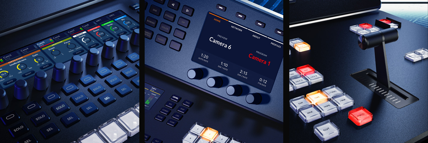 La forza di ATEM Television Studio è il suo design tutto in uno con i controlli standard a cui sono abituati i professionisti del broadcast. È un vero e proprio pannello di qualità broadcast, progettato per lavorare nel modo più veloce e accurato possibile. Ha anche in dotazione tre LCD per etichette, mixer audio e impostazioni, pulsanti di alta qualità e una leva per azionare manualmente le transizioni. I pulsanti dispongono di un LCD dedicato per le etichette, e premendo Shift accedi anche a 10 fonti aggiuntive. Il design compatto e duraturo di ATEM Television Studio lo rendono la soluzione ideale per i piccoli furgoni di regia mobile di nuova generazione.
