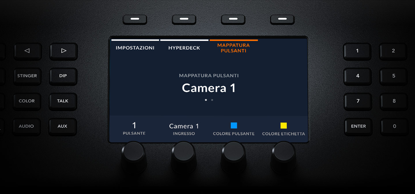 Oltre a farti accedere a tutte le impostazioni dello switcher direttamente dal pannello, il System Control selezionerà automaticamente le funzioni che ti possono servire in base alla sezione dello switcher che stai adoperando. Sfrutta l’ampio display LCD, i pulsanti contestuali e le manopole per modificare le impostazioni velocemente. I menù sono facili da navigare e organizzati per funzione. Per esempio puoi definire lo standard video, le impostazioni dell’uscita video, la configurazione del multiview e la mappatura dei pulsanti.