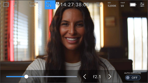 Il diaframma controlla la quantità di luce che attraversa l'obiettivo. Tocca l’indicatore Iris per cambiare l'apertura degli obiettivi compatibili e configurare le modalità di esposizione automatica.