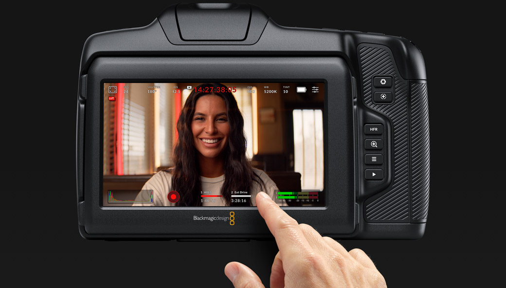 Blackmagic Studio Camera vanta lo stesso avanzato sistema operativo di Blackmagic URSA Mini Pro 12K, per cui è incredibilmente veloce e intuitiva. Tutte le funzioni principali sono accessibili dal display HUD con un tocco del dito, l'elegante ciak digitale facilita l'inserimento dei metadati, e nella dashboard è sufficiente passare il dito sullo schermo per cambiare le impostazioni di registrazione, monitoraggio, audio, configurazione, predefiniti e LUT 3D. Ogni funzione opera come una app indipendente ad alta prestazione, garantendo una stabilità superiore rispetto ai comuni software per camera. Questo sistema operativo è anche aperto agli aggiornamenti futuri!