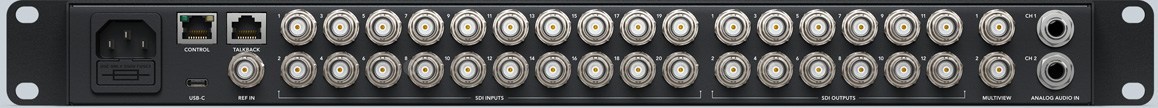 機種によって最大80系統のマルチレートSDI入力を搭載しているため、ATEM Constellationはあらゆるタイプのビデオソースと互換性があります。4Kシリーズでは、720p、1080i、1080p、2160pを含む、あらゆるHDまたはUltra HDテレビフォーマットの機器を接続可能。世界中であらゆるジョブのニーズに瞬時に対応できるのは、フォーマット間の切り替えが可能なマルチレートSDIだけです!またSDI入力は、エンベデッドオーディオを扱うことができ、あらゆるビデオ入力からのオーディオをミックスできます。プログラム出力には、トークバック、タリー、カメラコントロール情報が含まれます。つまり、スイッチャーのSDI出力のいずれかをカメラに接続して、プログラムリターン、カメラコントロール、トークバックを使用できます。
