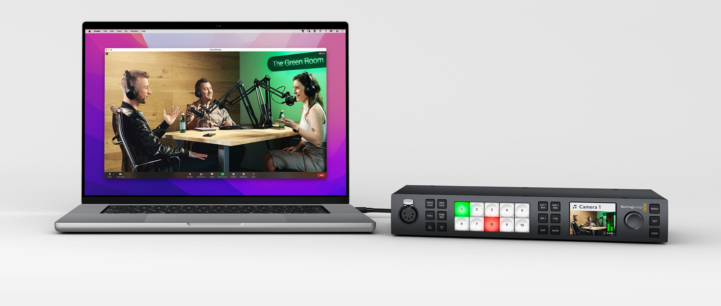 ライブ配信では、ATEM ConstellationのUSB-Cはウェブカメラのソースとして機能します。コンピューターに接続するだけであらゆるビデオソフトウェアで作業可能。ATEM Constellationはライブプロダクションスイッチャーですが、ソフトウェアはこれを一般的なウェブカムとして認識します。つまり、あらゆるビデオソフトウェアと互換し、フル解像度の1080HD品質が得られます。Zoom、Microsoft Teamsなど、お気に入りのソフトウェアを選択すれば、プロ仕様のマルチカム放送品質で、新しい形のプレゼンテーションを実現できます。ATEM Constellationのウェブカム出力は、Open BroadcasterやXSplit Broadcasterなどの様々な配信ソフトウェアと使用できます!