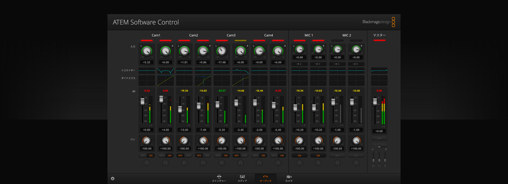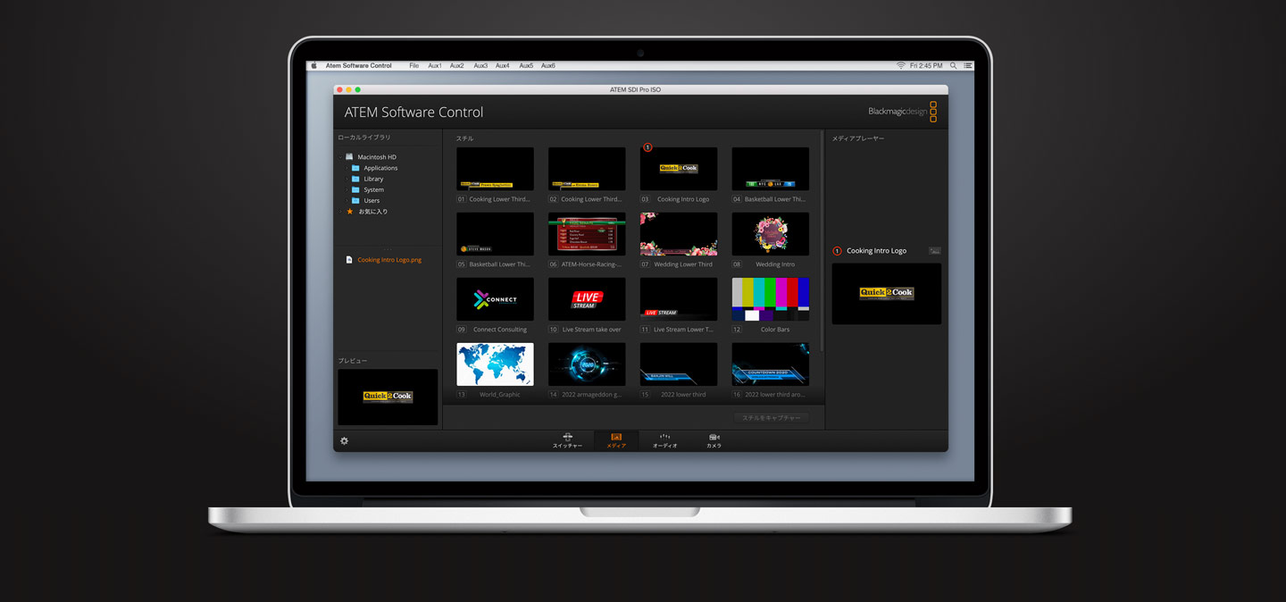 ATEM SDI ProおよびExtremeシリーズは、配信データをUSBフラッシュディスクに直接収録できます!つまり、配信と同じH.264ビデオファイル(AACオーディオ付き)を使用した長時間の収録が可能で、YouTubeやVimeoなど、あらゆるオンラインビデオサイトに直接アップロードできます。USBハブを使用して、複数のディスクへ収録することも可能。ひとつのディスクが一杯になると次のディスクに収録を継続するため、ノンストップで収録できます。収録設定およびディスクの選択はATEM Software Controlで実行でき、内蔵マルチビューに収録ステータスを表示できます。