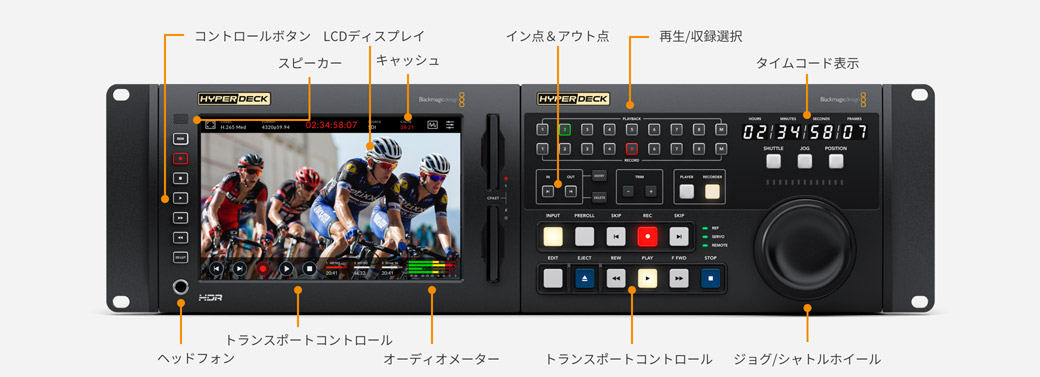 Ultra HDおよびタッチスクリーンに対応したパワフルなHyperDeck。2160p60までのあらゆるSD、HD、Ultra HDフォーマットのH.265、ProResファイルを収録・再生。各種スコープ、アップグレード可能なキャッシュ、SDI、HDMI、アナログビデオに対応。