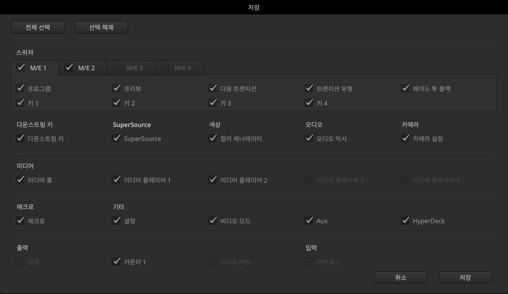 ATEM Constellation에서는 언제든지 스위처 설정을 저장할 수 있기 때문에 원하면 이를 다시 신속하게 불러올 수 있습니다. 스위처의 상태 정보가 XML 파일로 저장되므로 이 파일을 편집하여 수정할 수도 있습니다. 기존 ATEM 스위처 사용자가 ATEM Constellation를 구입해 사용할 경우, ATEM Mini XML 설정 파일을 포함한 다른 모든 ATEM 스위처 모델의 XML 설정 정보를 사용할 수 있습니다. 어떤 스위처든지 문제없이 모두 작동합니다. 스위처의 상태를 원할 때 언제든지 저장할 수 있을 뿐 아니라 ATEM Software Control에서 특정 시간 간격으로 스위처 상태를 자동 저장하는 동시에 이전 버전의 파일을 유지하도록 설정할 수도 있습니다. 스위처 상태를 저장하면 설정 내용뿐 아니라 미디어 풀의 모든 콘텐츠까지 함께 저장됩니다.