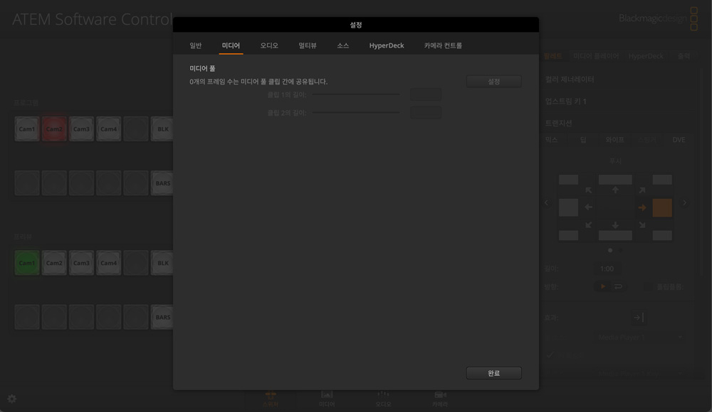 ATEM Mini는 전면 패널, 혹은 무료로 제공되는 Mac/Windows 지원 ATEM Software Control을 사용해 제어할 수 있습니다. ATEM Software Control을 사용하면 더 많은 제어 기능과 창의적인 옵션들을 활용할 수 있습니다. 영상 소스의 라이브 전환 및 미디어 풀에 그래픽 로딩, 트랜지션 및 키잉 사용, 스위처 설정 변경, 오디오 믹싱 등을 수행할 수 있습니다. 대규모의 라이브 프로덕션에서는 이 소프트웨어를 여러 개 운영하여 여러 명이 같은 프로그램에서 동시에 작업할 수 있습니다.