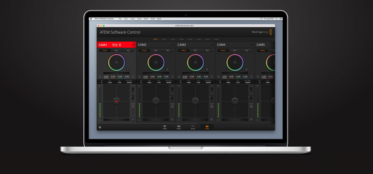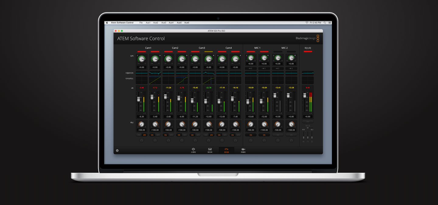 ATEM SDI Pro와 ATEM SDI Extreme 모델은 USB 플래시 디스크에 스트리밍 영상을 바로 녹화하는 기능을 지원합니다. 다시 말해, 스트리밍 영상을 장시간 동안 H.264 포맷으로 AAC 오디오와 함께 바로 녹화할 수 있으며 이 파일을 유튜브 또는 비메오 등의 온라인 비디오 사이트로 직접 업로드할 수 있습니다. USB 허브와 함께 사용하면 여러 개의 디스크에 녹화할 수 있어 디스크 한 개가 가득 차면 다음 디스크에 녹화를 계속 이어갈 수 있습니다. 녹화 관련 설정 및 디스크 선택은 ATEM Software Control에서 할 수 있으며, 녹화 상태 정보가 멀티뷰 화면에 나타나도록 할 수도 있습니다.