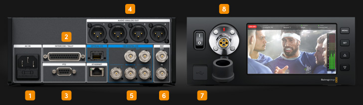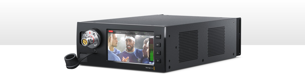 Blackmagic Studio Fiber Converter는 스튜디오나 야외 중계 차량 등 방송용 카메라 체인의 다른 한쪽에 연결해 사용합니다. 원격 카메라 뒷면의 신호를 라이브 프로덕션 스위처와 오디오 믹서, 토크백 인터페이스에서 사용할 수 있는 TV 업계 표준 연결로 변환합니다. 광케이블 사용을 위한 고성능 전원 연결장치를 탑재하여 카메라와 추가 액세서리 운용에 충분한 전원을 공급합니다. Blackmagic Studio Fiber Converter는 탈리, 업계 표준 서드파티 토크백 시스템을 위한 듀얼 채널 인터컴, 광섬유 연결이 끊길 때를 대비한 백업 토크백 채널을 제공합니다. 메인 UHD 카메라 피드, 3개의 개별 HD 리턴피드, 풀 원격 카메라 컨트롤, PTZ, 트래커, 토크백, 이더넷 모두를 단일 SMPTE 광복합 케이블을 통해 전송할 수 있습니다. 전면 패널 SMPTE 광섬유 연결 바로 옆에는 5인치 크기의 LCD 화면이 있어 카메라에서 전송되는 신호를 모니터링할 수 있습니다. 원격 카메라 기능을 더욱 간단히 패칭하고 확인할 수 있습니다.