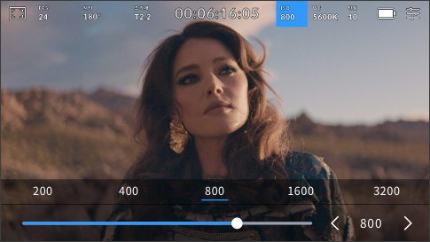놀라운 감광도를 지원하는 URSA Cine는 주어진 조명 여건에서 최상의 영상을 제공할 수 있도록 제작되었습니다. ISO를 누르면 영상을 확인하면서 빠르게 설정을 변경할 수 있습니다. 다시 말해, 각기 다른 설정이 영상에 미치는 결과를 바로 확인할 수 있어 설정 화면과 영상을 오가며 작업할 필요가 없습니다.