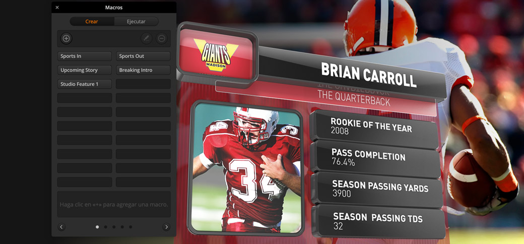 El complemento para Photoshop incluido permite crear gráficos en tiempo real y guardarlos en la memoria del mezclador. Esto facilita su disponibilidad para emitirlos al aire en cuestión de segundos. La mayoría de los diseñadores gráficos utilizan este programa a diario, y ahora es posible sacar provecho de su capacidad creativa para mejorar las producciones en directo. Los logotipos, tercios inferiores, tablas de puntuación y otros gráficos de calidad profesional pueden importarse directamente desde el panel multimedia.