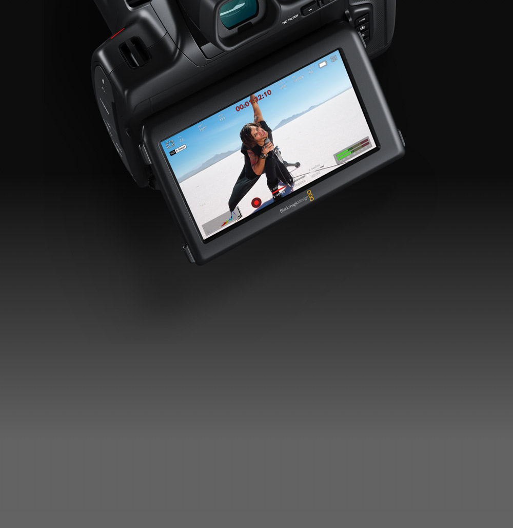 Con los modelos Blackmagic Pocket Cinema Camera, ya no es necesario emplear un monitor adicional a fin de garantizar que las tomas de alta resolución estén correctamente enfocadas. Esto se debe a que las versiones 6K incluyen una pantalla brillante de 5 pulgadas ideal para encuadrar planos y ajustar el enfoque. Además, el modelo 6K Pro cuenta con una pantalla de 1500 nits que permite visualizar las imágenes a plena luz del día. Al pulsarla dos veces, es posible acercar la imagen o activar el indicador de enfoque, entre otras funciones. Por otro lado, también brinda la posibilidad de acceder al sistema operativo interno de la cámara, con el propósito de controlar todas las prestaciones avanzadas simplemente deslizando el dedo sobre la pantalla, o incluso añadir metadatos mediante la claqueta virtual.