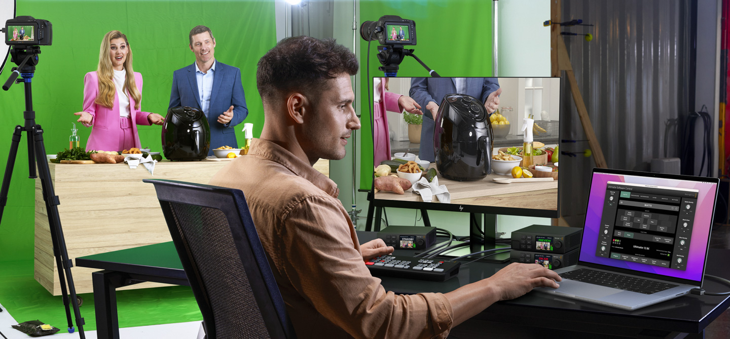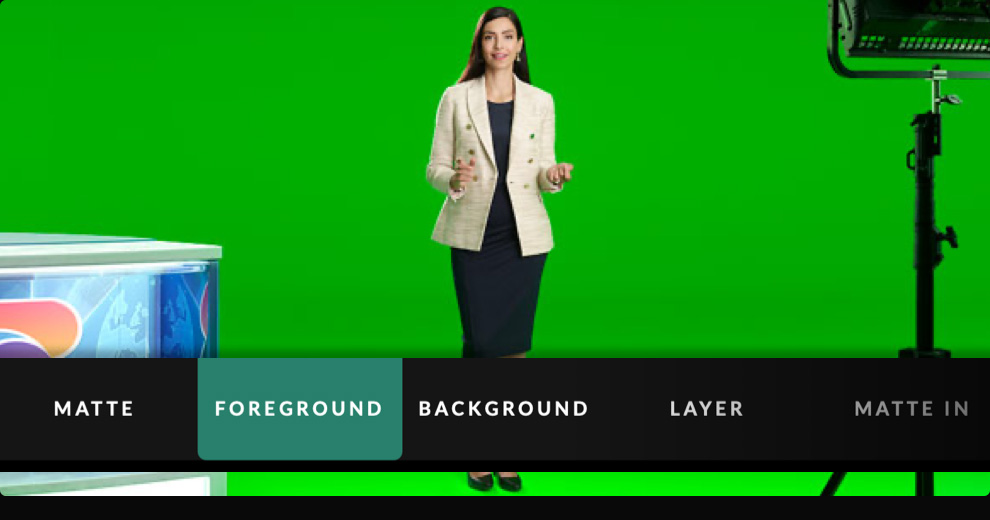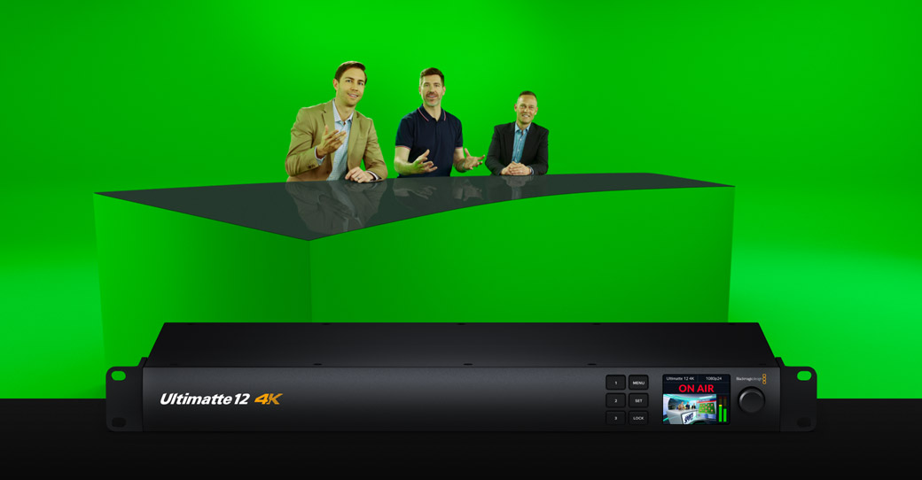 Al trabajar en directo con múltiples cámaras que filman desde diferentes ángulos, es común que los fondos verdes presenten cierta variación. Las herramientas de composición que ofrecen los mezcladores utilizan los mismos parámetros para todas las unidades, lo cual compromete la calidad las composiciones, ya que existe una ligera diferencia en la forma en la que cada cámara capta el color verde. El nuevo Ultimatte 12 elimina estos problemas porque ofrece una tecnología inigualable a un precio accesible, de modo que es posible combinar cada cámara con un compositor, y así visualizar la señal de cada cámara en una pantalla diferente. A su vez, esto facilita la creación de composiciones profesionales que no están limitadas por el diseño del set, a fin de crear entornos completamente novedosos.