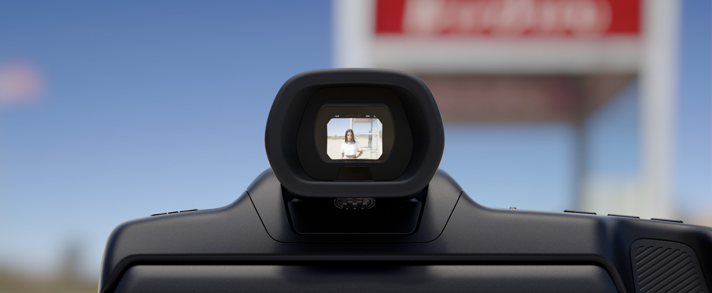Blackmagic Cinema Camera 6K supports an optional viewfinder to make outdoors and handheld shooting accurate and easy! You get an integrated high quality 1280 x 960 color OLED display with built in proximity sensor, 4 element glass diopter for incredible accuracy with a wide -4 to +4 focus adjustment. A built in digital focus chart ensures you get perfect viewfinder focus setup. You can also view critical status information such as frame guides. The EVF is extremely easy to connect to the Blackmagic Cinema Camera 6K as it simply mounts on top of the camera with a single screw. The viewfinder has a 70 degree swivel range and comes with 4 different types of eyecups for both left and right eyes.