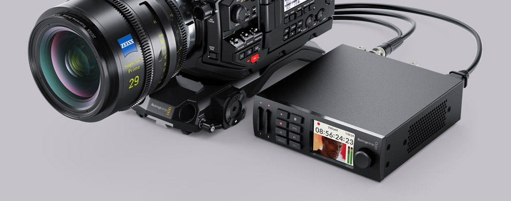 HyperDeck Studio HD Mini is a miniaturized broadcast deck that records and plays back broadcast quality 10-bit video as ProRes files onto commonly available UHS-II SD cards. They’re small enough to add to your URSA Mini Pro as a back up recorder and, if you’re working on a live multi camera production with URSA Mini Pro and an ATEM switcher, you can add HyperDeck Studio HD Minis as ISO recorders and master program recorders. That means you’ll have archival copies from each camera along with a copy of the final finished program!