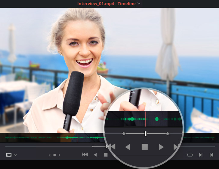 A visible audio waveform in the source viewer simplifies the process of marking interview and dialogue clips! Click the option menu, which looks like three dots, at the top right of the viewer to enable audio waveform overlays. This allows you to quickly navigate to different parts of a clip based on spikes, silent areas or other visual cues in the audio waveform. Tape style audio scrubbing makes it possible to understand dialog while playing back at slower speeds. The combination of tape style scrubbing and audio waveform overlays lets you quickly and precisely find the parts of the clip you want. It’s also easier to create split edits where the audio starts before or after the video.