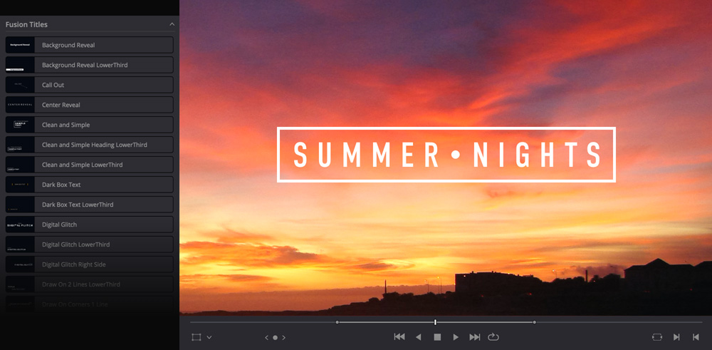 The effects library has extensive broadcast quality transitions and special effects plug-ins. Simply click the effects library icon at the top left of the page to open it, select the effect you want and drag it onto a clip in the timeline or onto the cut point between clips when adding transitions. Transition duration can be changed by dragging the edges of the transition in the timeline or by changing it in the inspector at the top right. The effects library features over 30 different transitions such as wipes and dissolves, along with over 65 GPU and CPU accelerated effects, including blurs, flares, warps and more! Plus you can add 3rd party OpenFX plug‑ins for even more creative options!