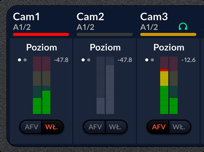 Podczas gdy w ATEM Television Studio wbudowane jest świetne miksowanie dźwięku, do miksowania dźwięku na żywo możesz też użyć paneli sterowania z USB kompatybilnych z Mackie™! Wystarczy podłączyć panel faderów z USB innej firmy do komputera Mac lub PC, aby sterować faderami w czasie rzeczywistym na każdym kanale audio. Przy regulacji poziomów na panelu, wirtualne fadery oprogramowania poruszają się w sposób zsynchronizowany. Poziomy na stronie ATEM Software Control można regulować myszą, a Flying faders na panelu zewnętrznym będą śledzić Twój ruch. Zewnętrzny panel faderów to fantastyczne uzupełnienie wbudowanego miksera audio, bo panel zewnętrzny, ATEM Software Control i wewnętrzne regulacje audio działają równolegle.