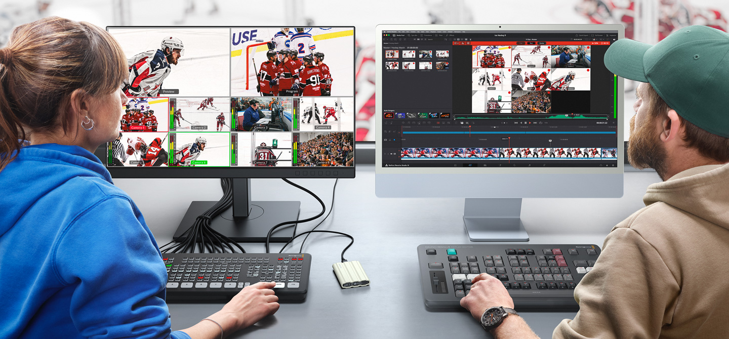 Introducing a new generation of live action replay! Blackmagic Replay is totally unique because it uses the ISO files recorded by ATEM SDI ISO models to do replay in DaVinci Resolve. The ISO files are recorded to a USB-C disk, which DaVinci can access via Ethernet. On a Mac, you can use the new multiview in the Cut page to view all cameras in DaVinci Resolve at the same time. This makes it easy to see which camera to play and sequence between shots. The files will even continuously upload as you’re recording so you can edit live! Because DaVinci Resolve is also an extremely powerful editor you can convert replays into promos, title sequences and instant social media updates!
