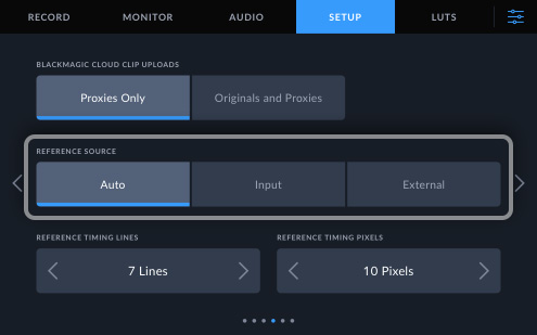Selects the reference source from the 3 options. Auto mode defaults to external if a signal is connected to the rear panel's REF input. The input setting will lock the to the video input. The external setting will always lock the external REF.