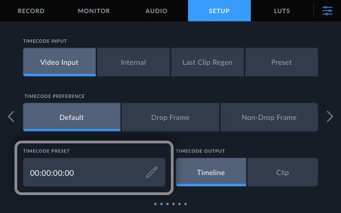 This menu lets you manually enter the timecode to use for recording. This means you can preset the timecode generator to a specific time before recording starts. Most broadcasters start recordings at 1 hour timecode, but you can use any time!