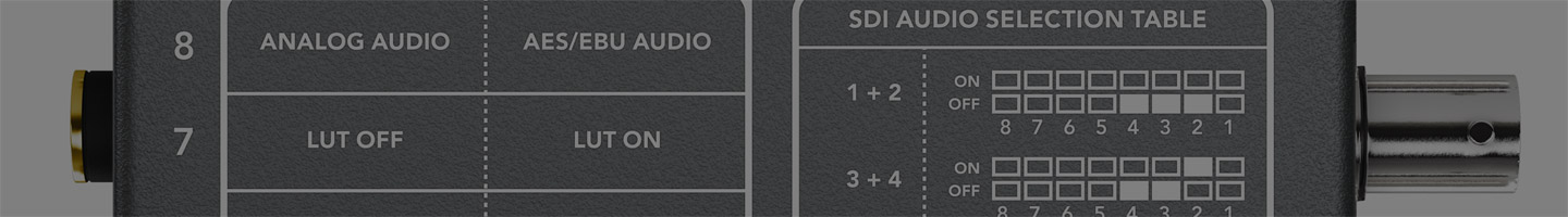Mini Converter Audio to SDI 4K includes everything you need to embed 4 channels of analog audio or 8 channels of AES/EBU digital audio into any SDI video connection. Now you can embed professional audio from devices such as audio mixers and analog decks into SDI video connections for use with SDI routers and decks or to add extra audio channels to video converters!