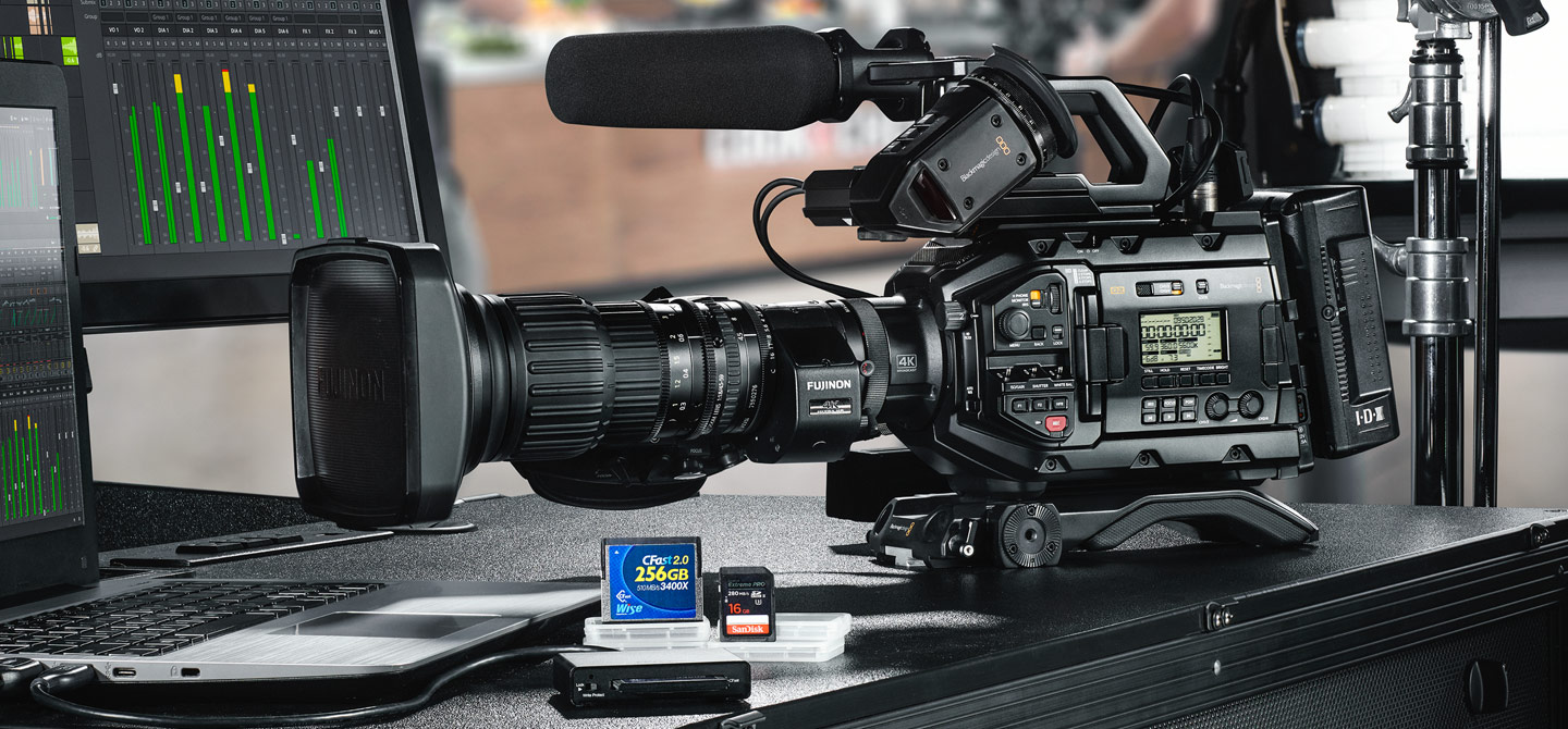 With dual CFast 2.0 recorders and dual SD/UHS-II card recorders, you can choose the media that's best for you! Both types of media are standard, inexpensive and readily available at computer and camera stores. Plus with dual media slots, URSA Broadcast gives you non stop recording! When a card is full, recording automatically continues onto the next card so you can swap a full card while recording continues. You get enough speed to record high quality ProRes and H.265 video file formats, even when working in Ultra HD at high frame rates. That means URSA Broadcast G2 is easy to integrate into your existing broadcast systems. You can even record 12-bit Blackmagic RAW cinema files!