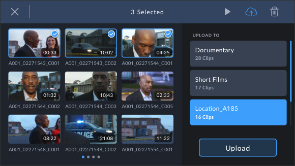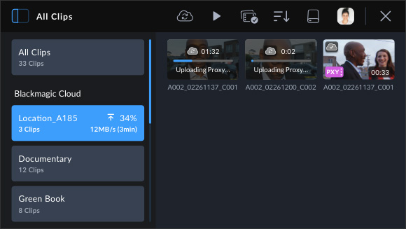 Log into Blackmagic Cloud and select a DaVinci Resolve project before recording. After each individual recording the media will automatically upload and sync to all DaVinci users on that project.