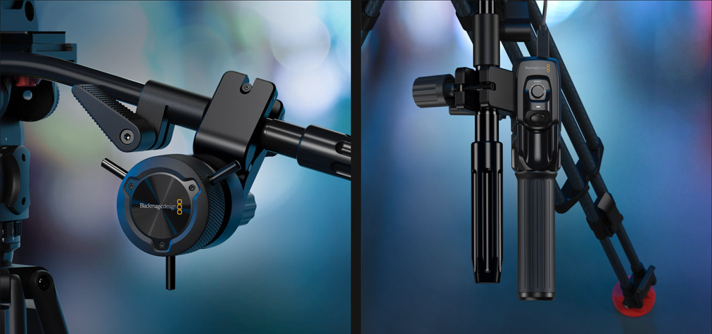 The optional zoom and focus demands allow you to use photography lenses for live production! The focus and zoom demands have USB-C connections so they control the lens via the camera’s electronic lens control. Each zoom and focus demand has 2 USB-C ports, so you can daisy chain them then connect to the camera with a single USB connection. The design has an incredibly precise feel so you get very fine lens control, and you can frame and adjust the lens without taking your hands off the tripod handles. The buttons can be customized so you can assign different camera functions to them! Plus, hardware is included for mounting the focus and zoom demands onto tripod handles.