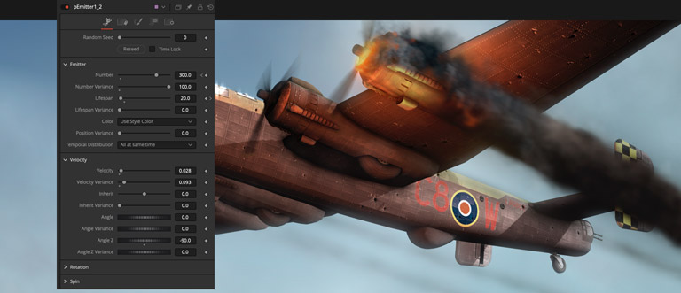 Fusion’s 3D particle generator opens up an entire world of swirling, sparkling, fantastic effects! Use them to simulate realistic snow or rain, complete with physics like gravity, avoidance and bounce. Add behavioral forces to create a flock of birds or colony of ants! Particle systems work in 3D, which means they can swirl and surround other elements in your scene!