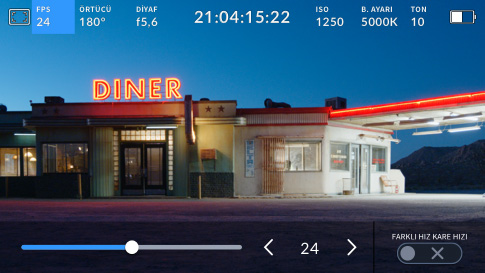 Saniyedeki kare sayısı ayarı, normalde post prodüksiyonun teslimat formatına göre belirlenir. Sensör hızını kamera kayıt hızından bağımsız ayarlayarak ilginç hız efektleri de oluşturabilirsiniz.